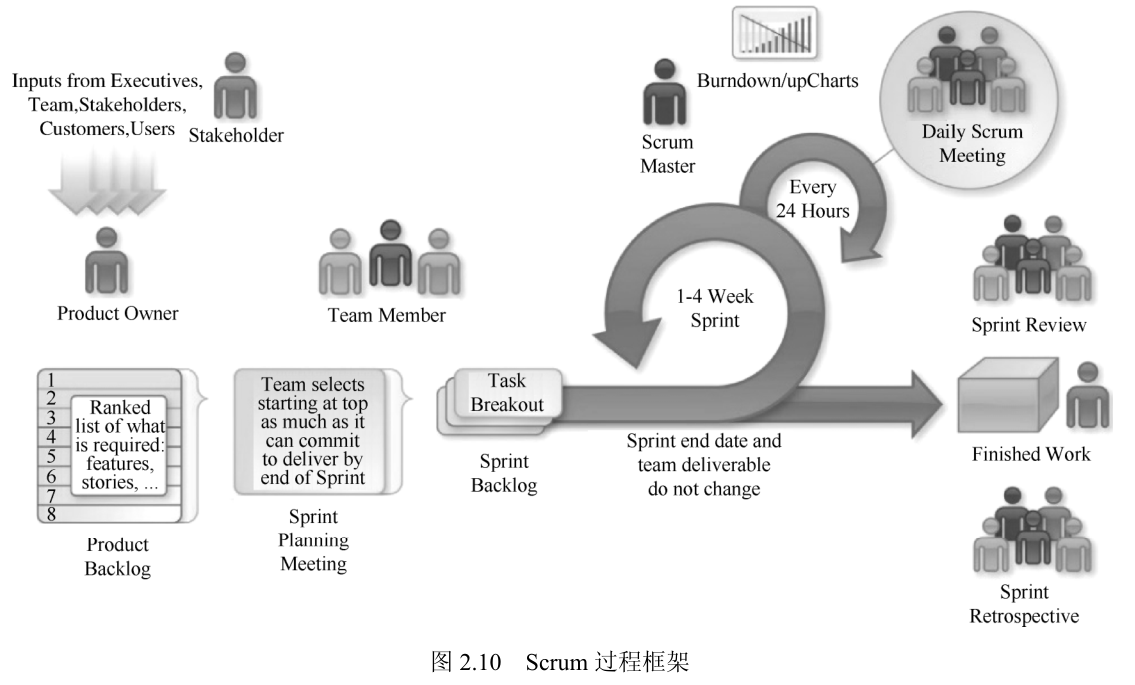 每个 Sprint 周期结束后,都会有一个可以被使用的系统交付给客户,并进行 Sprint 评审会议 (Sprint Review)