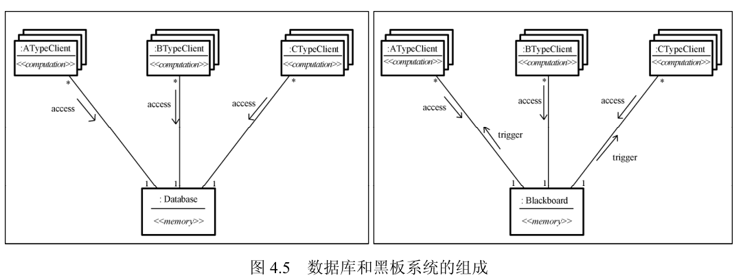 在仓库 / 黑板系统风格中,有两种不同的构件:中央数据结构,说明当前状态;独立构件,在中央数据存储上执行。传统应用是信号处理领域,如语音和模式识别,另外的应用包括松耦合代理数