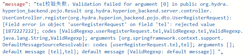 错误信息很冗长,最后字段 message 告示我们,校验错误消息仍然是默认值。